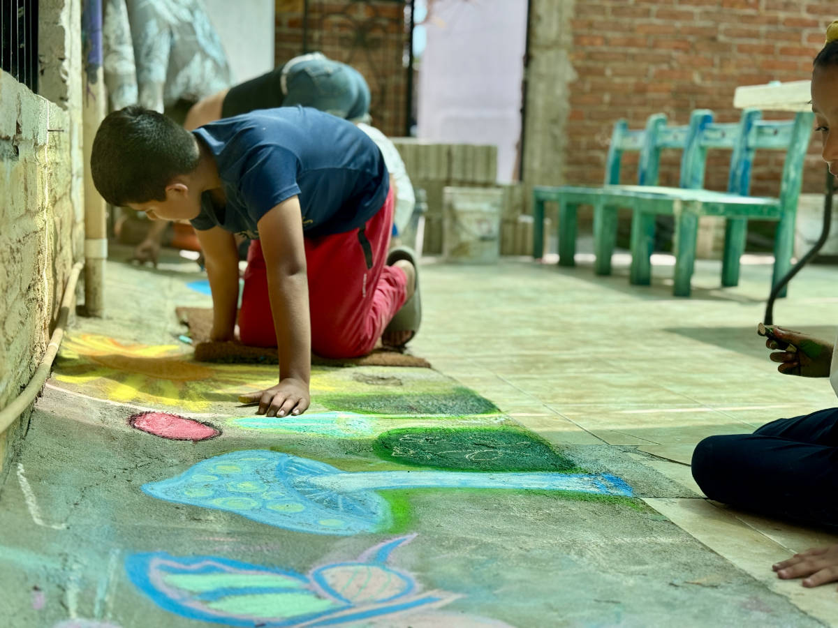 This week at kids club, our children discovered the magic of chalk art. With Teacher Alejandra’s warm guidance, they learned the story behind this beautiful art form and filled our space with bright, joyful drawings. Their ideas came alive, showing just how powerful their imaginations can be.