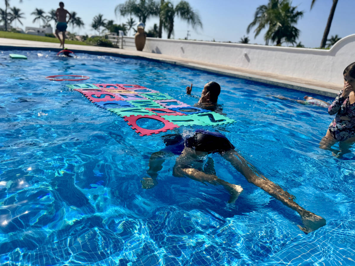 And of course—swimming, their all‑time favorite! This week they pushed themselves even further with a fun obstacle course in the pool. Our advanced swimmers improved their speed and technique, while our new swimmers grew braver underwater and strengthened their breathing. Barbara and Marlon stood out with their dedication and spark.